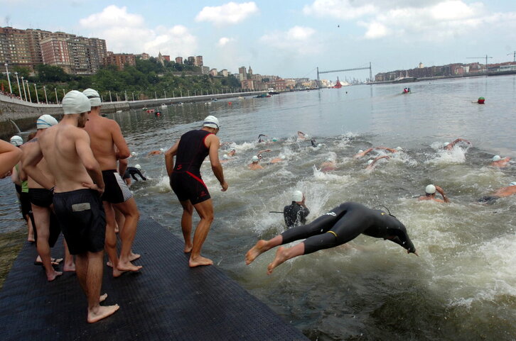 Itsasadarretik igeri egiteko I. Zeharkaldia Sestaon.