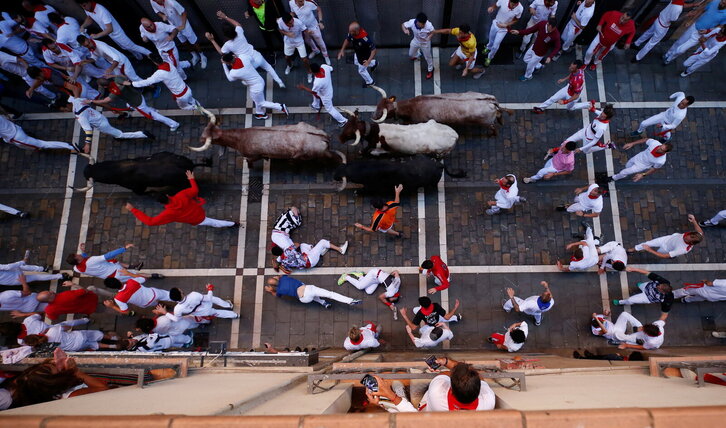 Sanferminetako bigarren entzierroa Miura ganadutegiko zezenekin.
