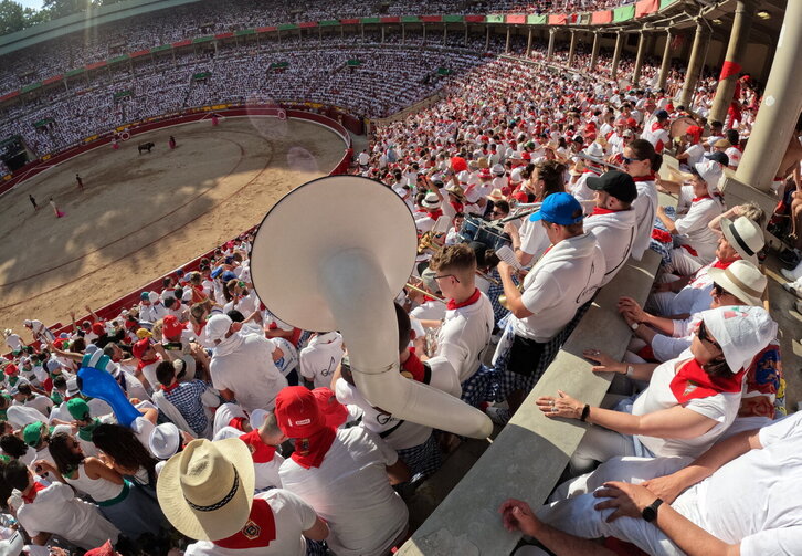 Sanferminak Iruñean. Irudian, zezen-plazako giroa.