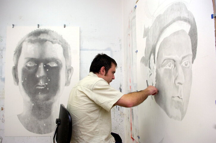 Jose Miguel Corral margolaria bere estudioan, Iruñean.