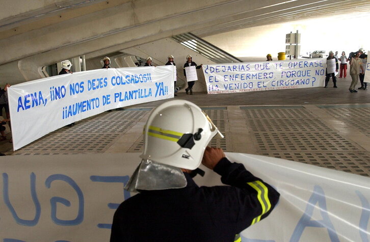 Loiuko suhiltzaileen protesta langile kopurua handitzeko eskatuz.