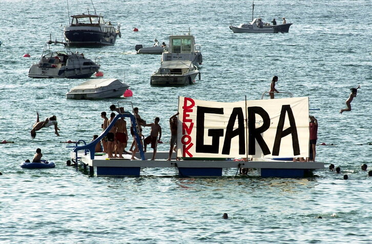 GARA egunkariaren aldeko giza katea Donostian. Irudian, Kontxako gabarroian ezarritako pankarta.