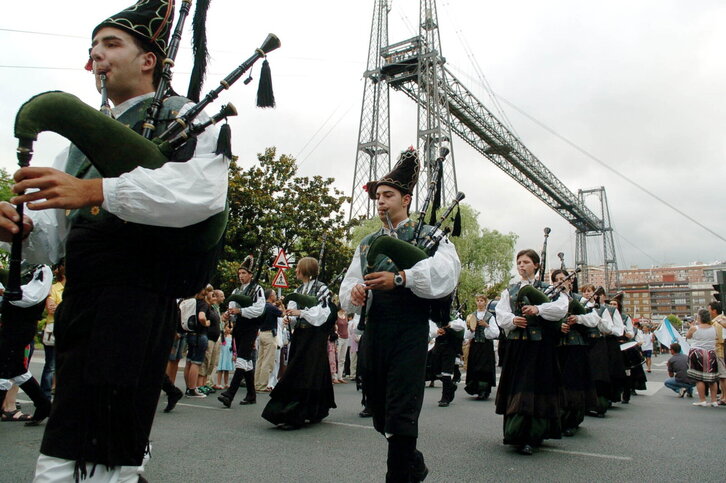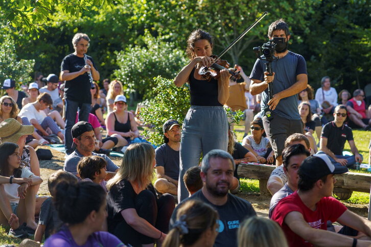 GARA egunkariaren aldeko giza katea Donostian. Irudian, txalapartariak amaierako ekitaldian.