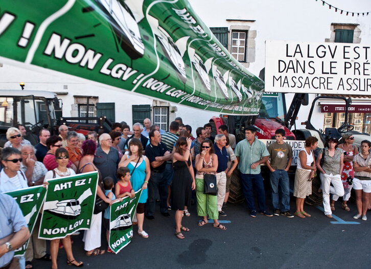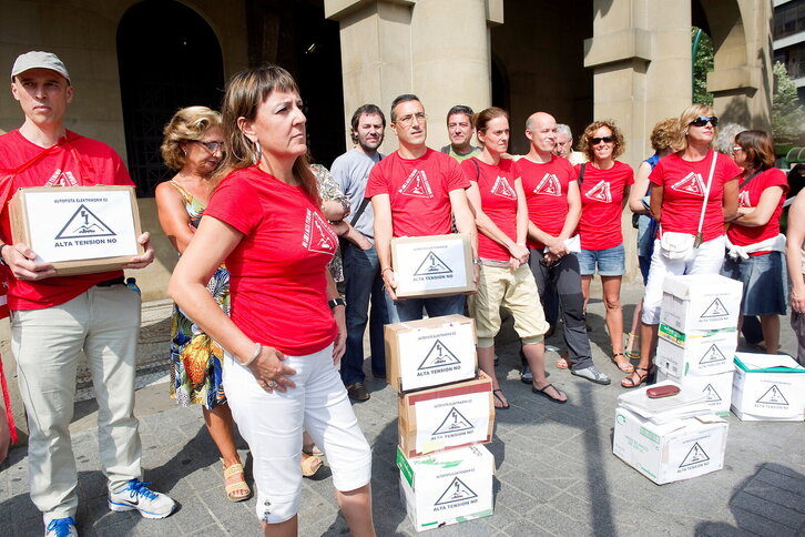 12.000 alegazio baino gehiago goi tentsioko linearen aurka. Irudian plataformakoak alegazioekin gobernu ordezkaritza aurrean Iruñean.