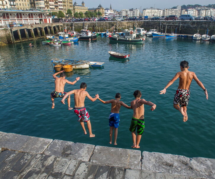 Bero bolada Euskal Herrian eta jendea goizeko lehen orduan Donostiako Kontxa hondartzan ibilaldia egiten.