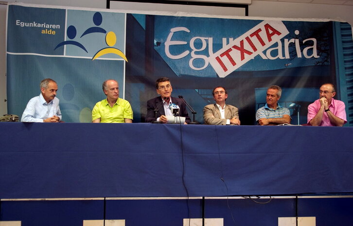 'Egunkaria'-ko auziperatuen prentsaurrekoa Auzitegi Nazionalak kasua artxibatzeko erabakia baztertu ondoren.