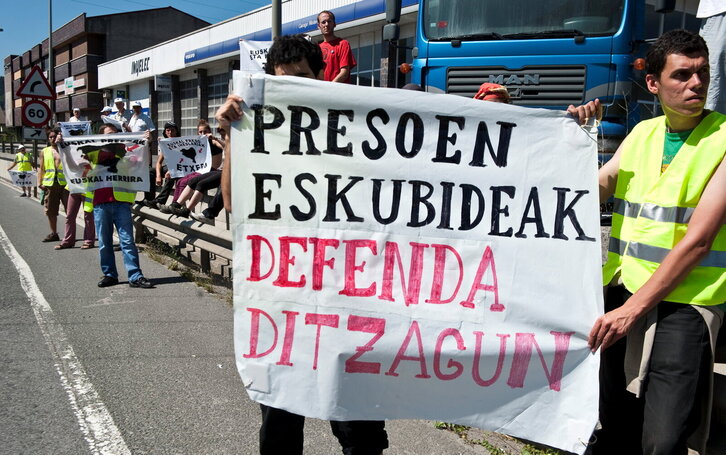 Presoen aldeko mobilizazioa N-1 errepidean Olaberrian.