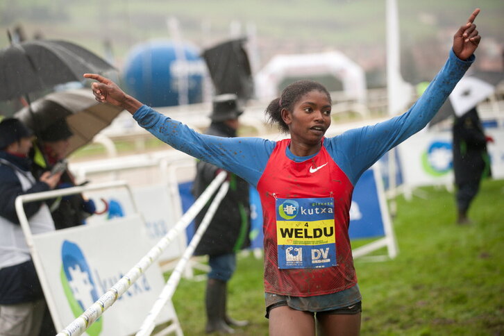 Nazareth Weldu helmugara iristen Zornotzako Nazioarteko Krosean.