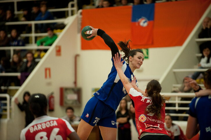 Bi emakume Kontxan urteko lehenengo bainua hartzen.