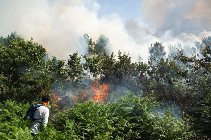 Helikoptero bat Ezkabarten hasitako sutea itzaltzen.
