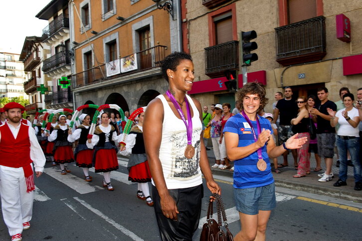 Maialen Chourraut eta Nely Carla Alberto kirolariei harrera egin diete Lasarte-Orian.
