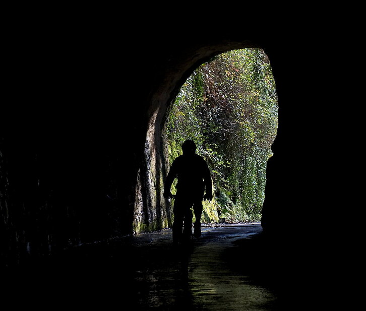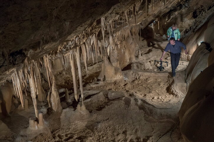 Jagoba Manterola Fokuko argazkilaria grabaketa lanetan Larraungo Mendukilo kobazuloan.