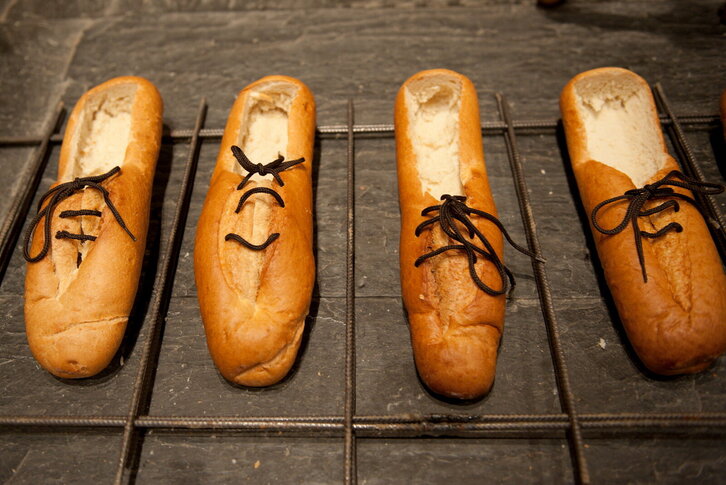 "Sinbiosia, elikatzen duen artea" erakusketa, ogiarekin egindako artelanak.