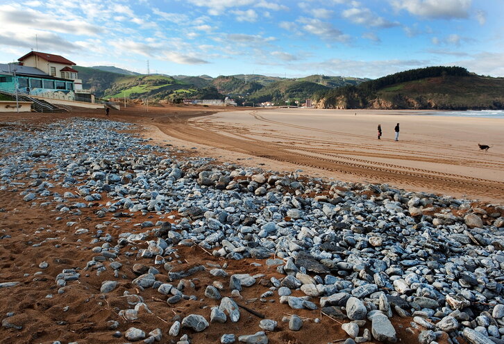 Muskizeko La Arena hondartzan pilatutako harriak.