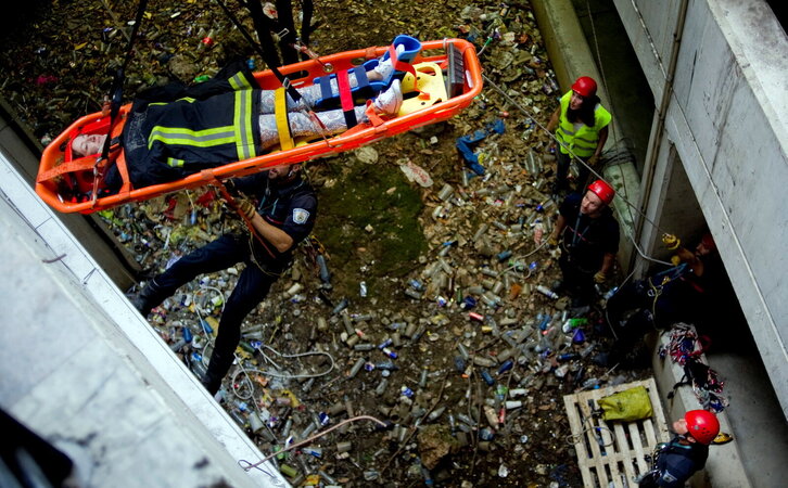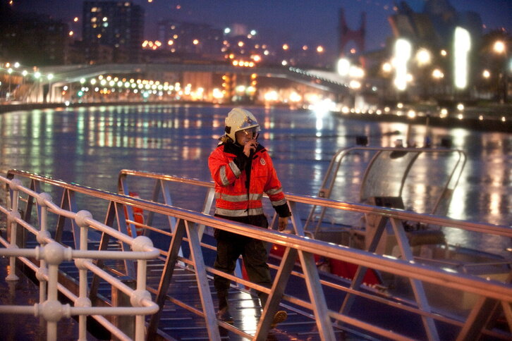 Suhiltzaileak lanean Deustun uholdeen arriskua dela eta.