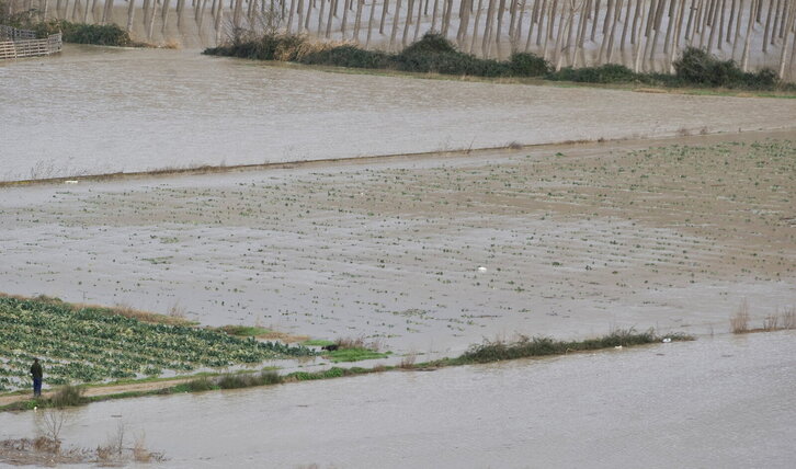 Baratzak urez beteta Arga ibaiak gainezka egin duela eta.