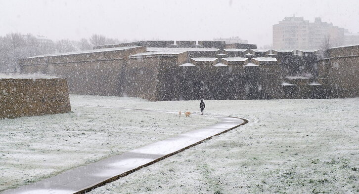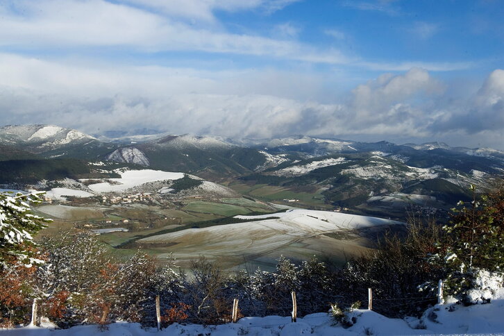 Baraibar zurituta hotz eta elur denboralean.