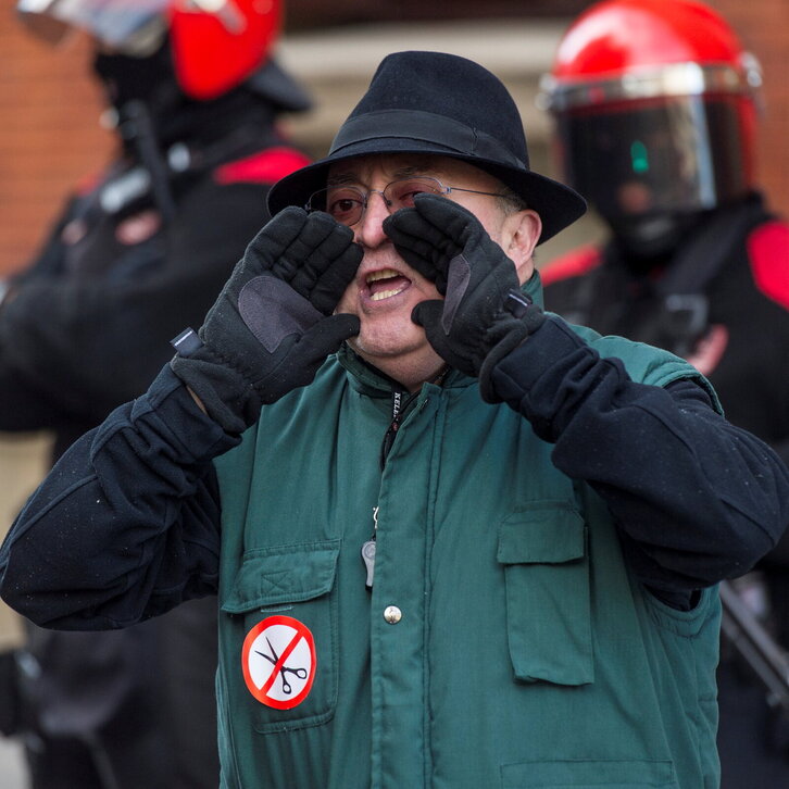 Epi Marin, Cementos Portlan enpresako langilearen prentsaurrekoa, gose greban 26 egun bete dituenean bere egoera salatzeko.