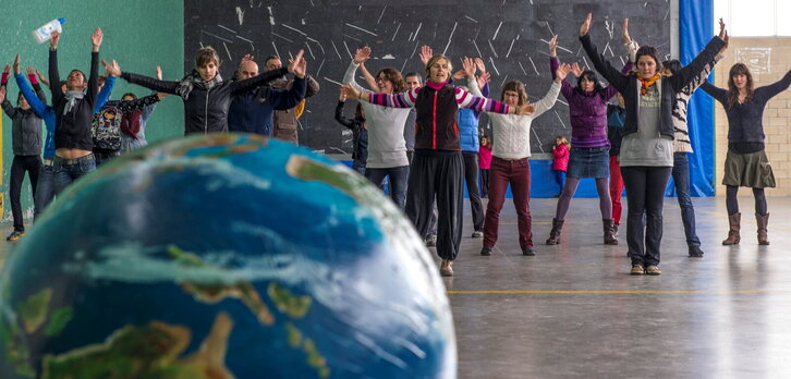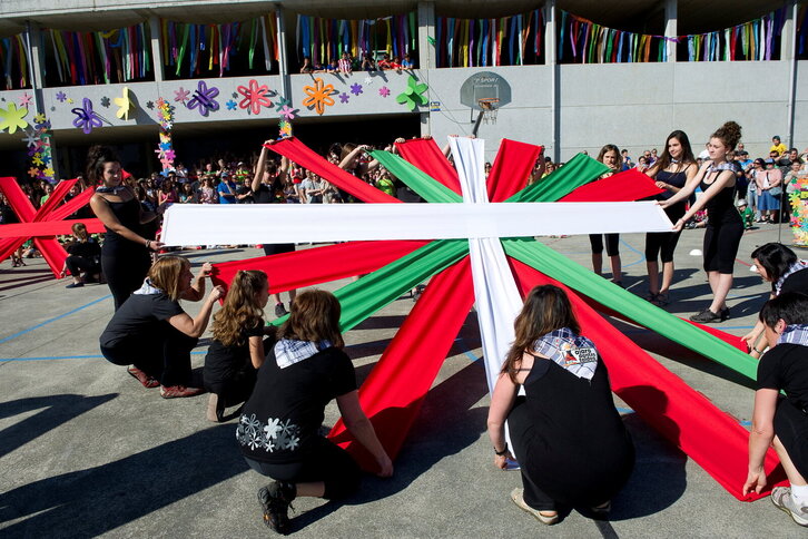 Markina-Xemeingo herritar talde batek, mosaiko erraldoi bat burutu du espainiar banderaren inposaketa salatzeko.