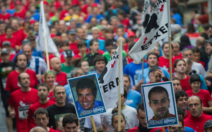 Senide bat kinkearekin Herrirak euskal presoen alde antolatutako manifestazioan.