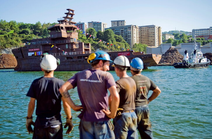 Ocean Osprey itsasontzia itsasoratu dute Pasai Donibaneko Zamakona ontziolako langileek.