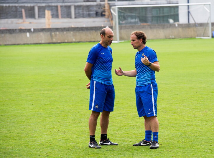 Jagoba Arrasate eta Txema Lumbreras Realako entrenatzaileak.
