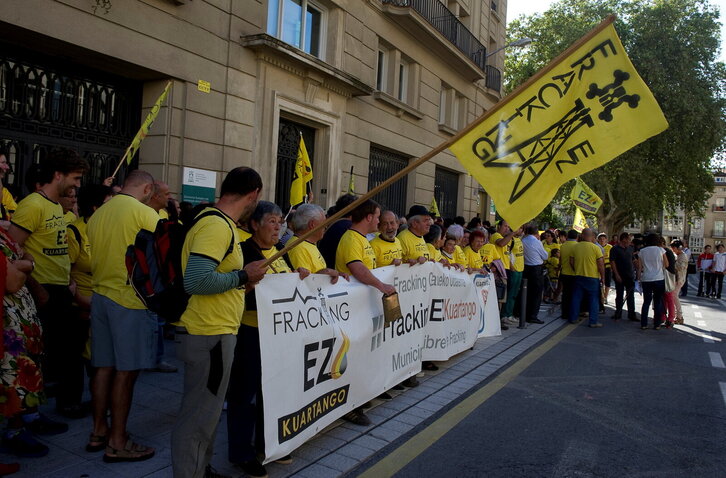 Fracking-aren inguruko galdeketa egitea debekatzen dietelako protesta egin dute Kuartangoko bizilagunek.