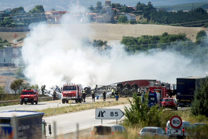 Trafiko istripu handia gertatu da A-15 autopistaren 85. irteeran, Ezkiroz parean.