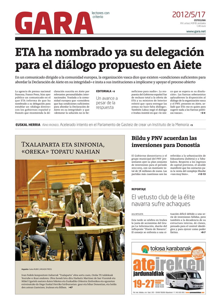 ETA ha nombrado ya su delegación para el diálogo propuesto en Aiete