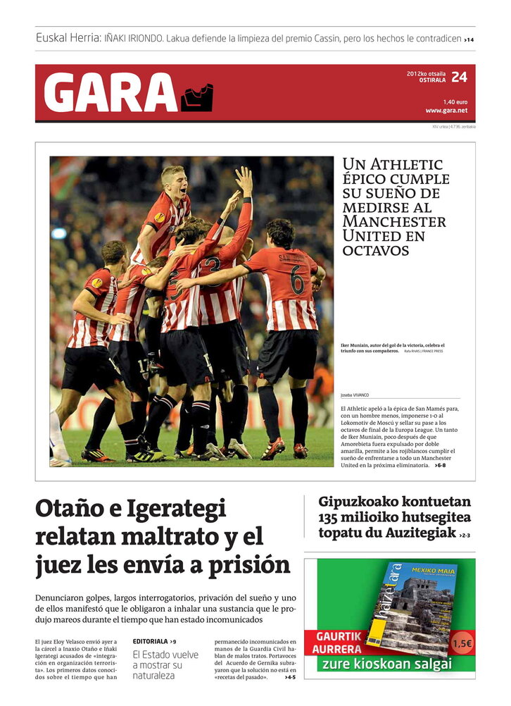 Nueva denuncia de tortura y pase del Athletic a octavos de la Europa League
