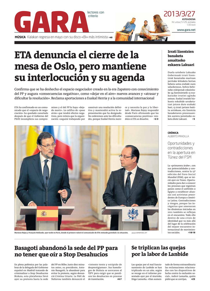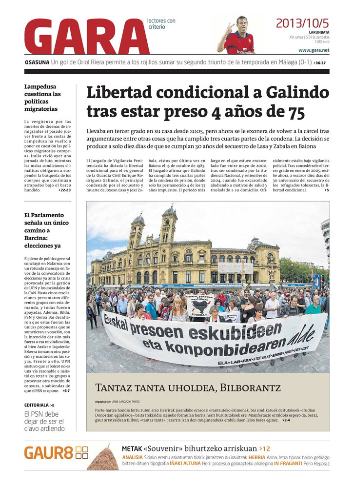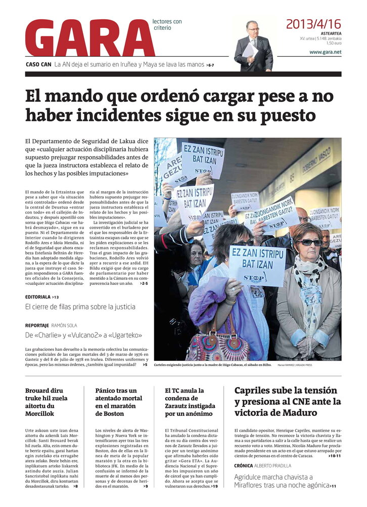 Kurdutarren haserrea 2013ko GARAko azalean.