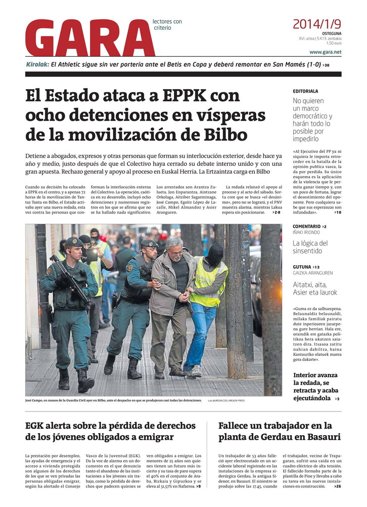 El Estado ataca a EPPK con ocho detenciones en vísperas de la movilización de Bilbo