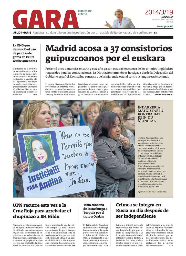 Euskararen erabileraren beherakadaren inguruko albistea, 2014. urtean