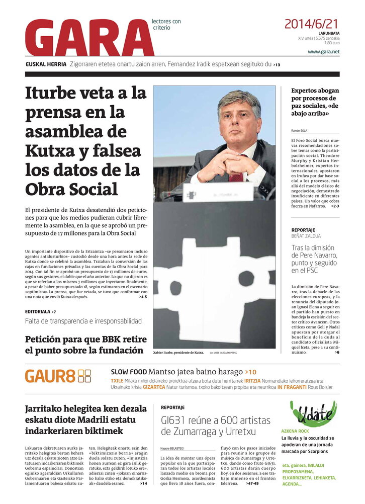 Iturbe veta a la prensa en la asamblea de la Kutxa y falsea los datos de la Obra Social