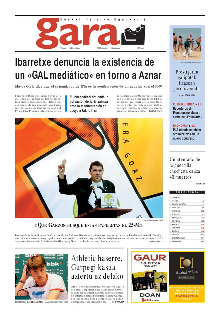 Ibarretxe denuncia la existencia de un «GAL mediático» en torno a Aznar