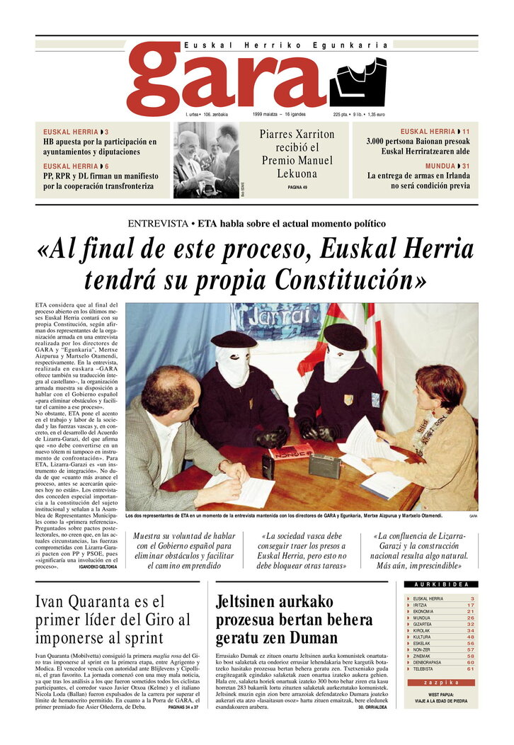 ETA: «Al final de este proceso Euskal Herria tendrá su propia Constitución»