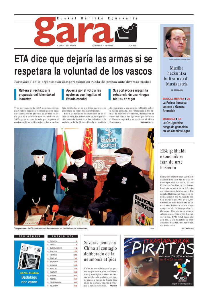 ETA dice que dejaría las armas si se respetara la voluntad de los vascos