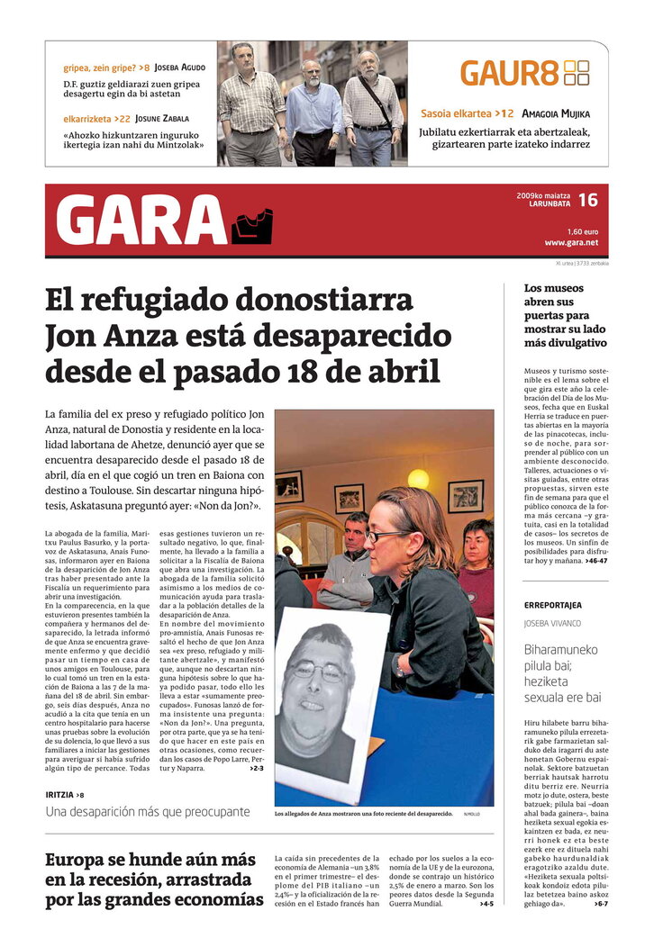 El refugiado donostiarra Jon Anza está desaparecido desde el 18 de abril