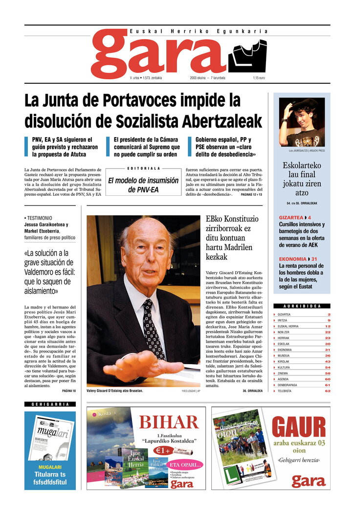 La Junta de Portavoces impide la disolución de Sozialista Abertzaleak