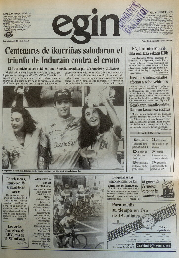 Centenares de ikurriñas saludaron el triunfo de Indurain contra el crono