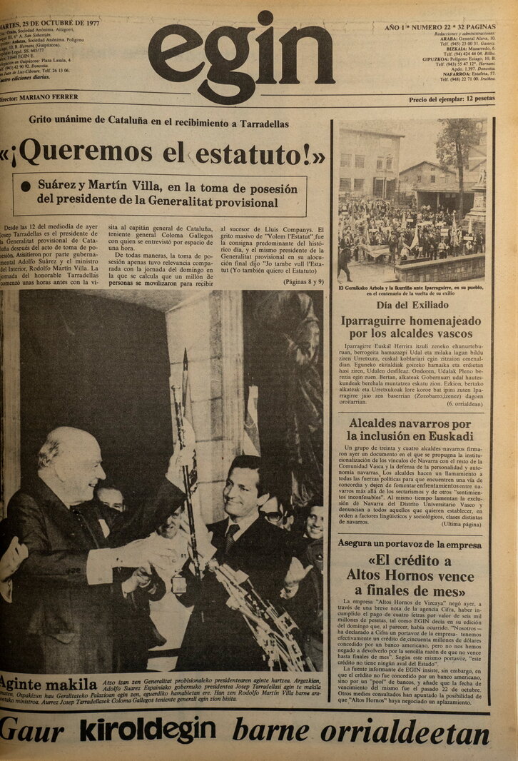 Tarradellas asume el cargo de president de la restituida Generalitat