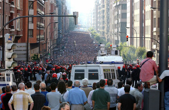 La Ertzaintza irrumpe con una tanqueta lanzando agua a presión contra una multitudinaria manifestación en Bilbo Nerea Goti 2024.09.14