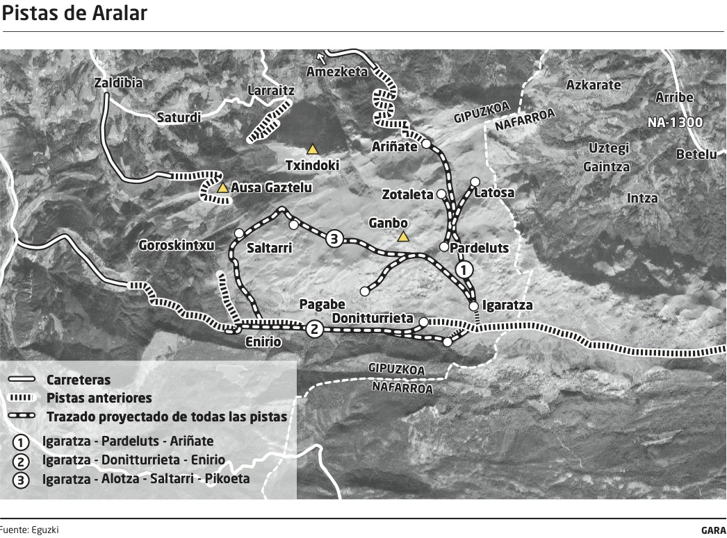 Declarado Parque Natural y Espacio de Especial Conservación de la Red Natura 2000, el proyecto de pistas en la sierra de Aralar, promovido por la Diputación de Gipuzkoa y la Mancomunidad de Enirio-Aralar se mueve entre la consideración de medida necesaria para sus defensores y de aberración para sus detractores.