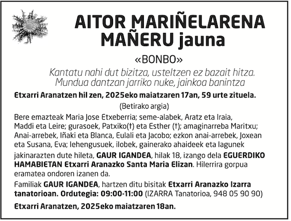 Harremanetarako arreta@naiz.eus (+34) 943 50 60 10