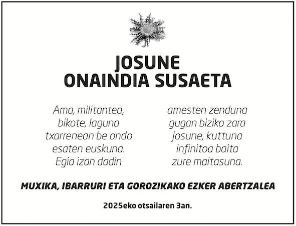 Harremanetarako arreta@naiz.eus (+34) 943 50 60 10