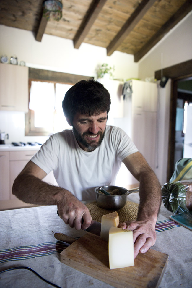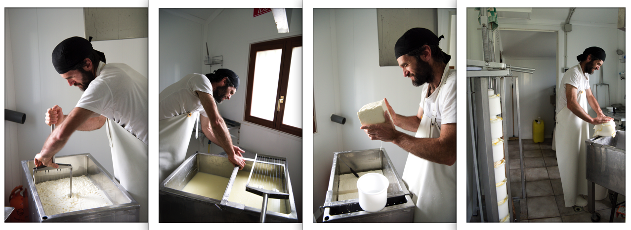 18-20 bat gazta ekoizten ditu egunero. Eguerdi aldera bederatzi edo hamar, eta gau ilunean beste hainbeste. Prozesua mantsoa da, eta arretaz egin beharrekoa. Insaustik, urteen joan-etorrian, erraz egiten du zaila dirudiena. Esnea iragazten du aurrena. Gatzagia bota gero, nahasi, eta ordu erdi itxaron, esnea mamitu dadin. Gero, txikitu egiten du, eta berriro nahasi, ura aletik banantzeko, gatzura kentzeko. Behin ura kenduta, bloke batzuen antzeko zatiak egiten ditu, edukiontzi berezi batzuetan sartu eta prentsan sartu. 12 ordu igaro eta gero, heltze-apaletan uzten ditu, prozesu naturala jarrai dezaten. Han utziko ditu, gutxienez beste bi hilabetez, eta gehienera lau edo bost hilabetez.