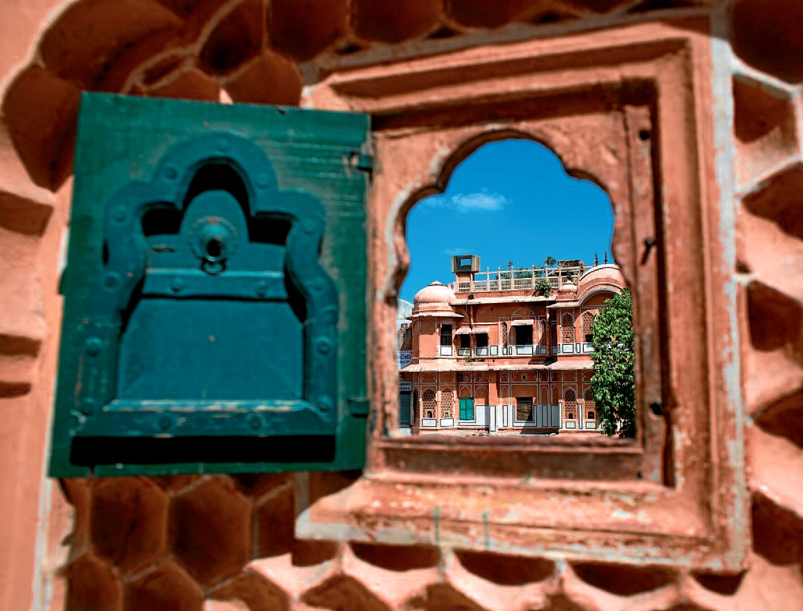 Jaipurri «hiri arrosa» ere esaten zaio –abegikortasunaren kolorea–, alde zaharra inguratzen duten harresien koloreagatik eta eraikin ikusgarrien aniztasunagatik. Jai Singh II.aren –gerlari, astronomo, arkitekto eta 11 urte bete zituenetik maharaja– leinuaren herentzia den Jaipur 1727an eraiki zuten, aurreko hiriburua, Amber, ordezkatzeko. Bertako alde zaharreko bihotzean ‘Haizeen jauregia’ nabarmentzen da, Hawa Mahal, hareharrizko bost pisuko bitxi arkitektonikoa, guztira 953 leiho erdioktogonal erdizirkular dituena.