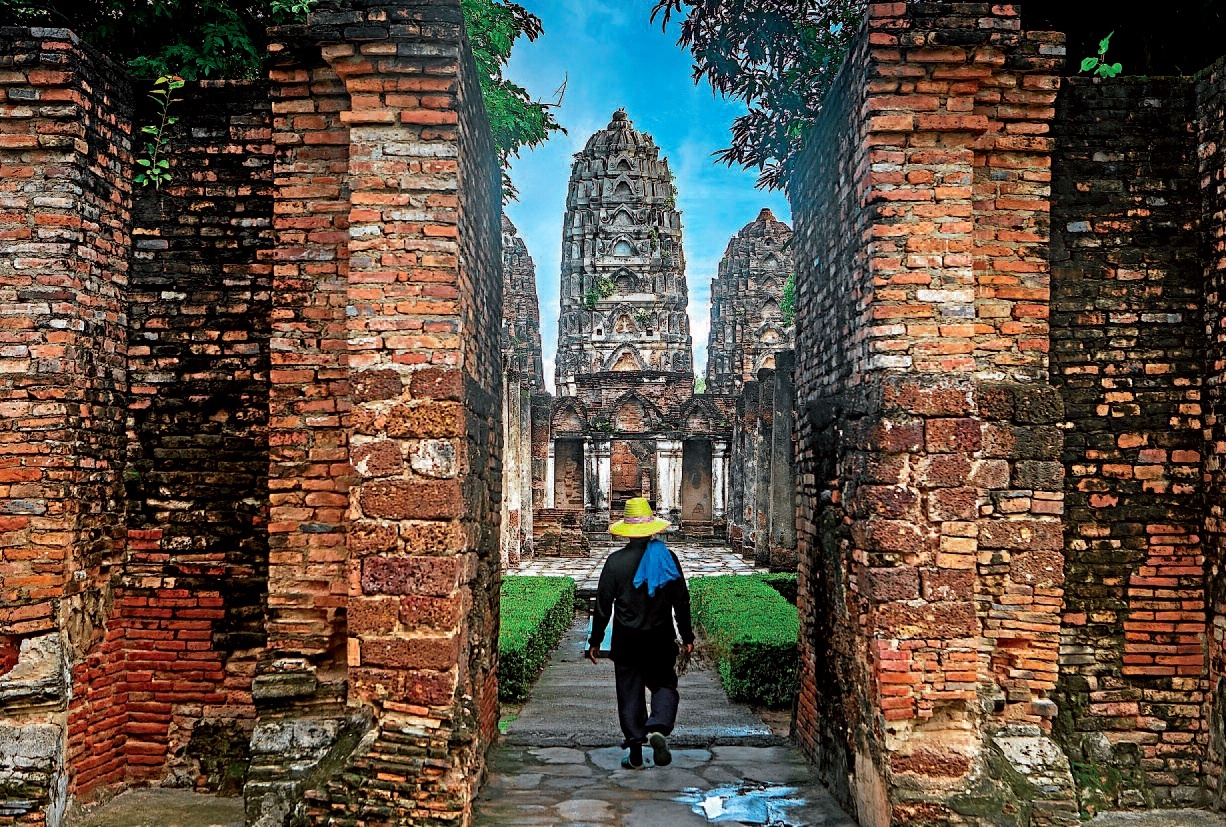 Hurrengo geltokia Sukhotain egin dugu, Siameko erresumaren lehenbiziko hiriburua izan zena 1257 eta 1379 urte artean, Khmer inperioak konkistatu zuen arte. Hiriburu izan zen urteek askorako eman zuten; bederatzi errege pasatu ziren bertatik, eta bertan sortu zen thailandiar alfabetoa. Urrezko aro haren oinordetzan geratu da munduko ondare izendatutako parke arkeologiko bat, egungo hiritik 12 kilometrora. Bisita egiteko modurik onena esparru arkeologikoaren inguruetan ostatu hartu eta atzera eta aurrera bizikletan ibiltzea da. Aztarnategi enigmatikoa da, hegoaldera begira dauden budak daude han-hemenka, eta jauregien eta santutegi budisten hondarrak ez ezik, khmerren ureztatze sistema eraginkor batek putzu, aintzira eta kanalen bidez kudeatutako akuifero baten aztarnak ere badaude.