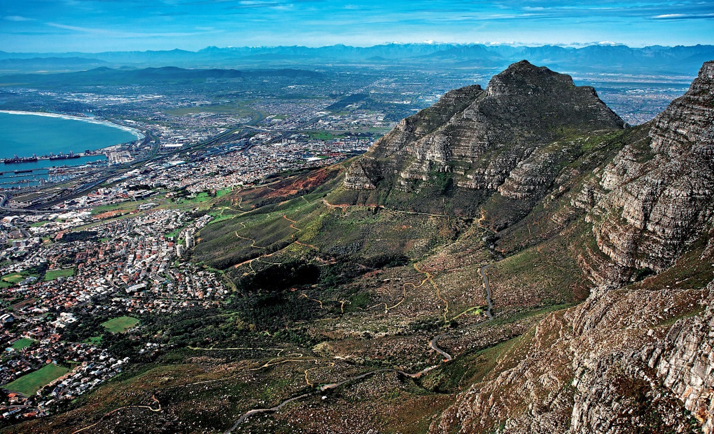 Hiriaren edozein txokotatik bistaratzen da Table Mountain. Tepui itxurako mendi honen gailurrera igotzea da ezinbestean egin beharreko beste gauzetako bat, bertatik zabaltzen baitira hiriaren ikuspegirik onenak. Gainera, naturaren zazpi mirarien zerrendan dago. Denbora izanez gero, igoera eta jaitsiera oinez egitea da onena; bestelakoan, teleferiko moderno batek tontorrean bertan utziko zaitu. Handik abiatuta, hainbat ibilbide seinalatu daude. Garrantzitsua da bidetik ez ateratzea, bertako natura ahalik eta hobekien babesteko. Ez da ezohikoa dassie taldeak aurkitzea. Akuriaren itxurako animaliatxo horiek, 50 cm eskas dutelarik, izugarri gogoko dute turistengana gerturatzea, mokadutxoa partekatzeko. Denboraz ondo bagabiltza, mendi honen biki txikia, Lions Head, bisitatzeko aprobetxatu dezakegu, izen hori jasotzen baitu mendiak, perspektiba jakin batetik begiratuta eta irudimen apur bat jarrita lehoi baten silueta antzeman daitekeelako.