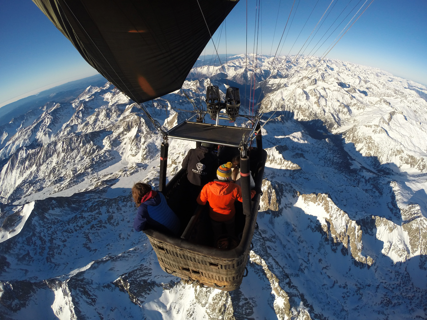 Igandeko 09:45ak dira eta 4.000 metrotik gorako altueran gaude. Atzo elurra egin zuen eta gaur urdinak dena bete du. Aldeko haizeekin, iragarpen meteorologikoa egokia da. Gure azpian, alfonbra zuri zimur bat. Eta eskularruak erantzi ditugu. Inbertsio termikoa da. Agian, sugar ugariak lagungarriak dira. Izan ere, nabaria da beroa, suzko mihiek miraria ahalbidetzen dutenean, 210.000 oin kubiko aire berotuta, hemen goian nagusi den isiltasuna hausten duen orroaren ondoren. Miquelek bi egun lehenago deitu zidan: «Nola daukazu igandea? Eguraldi iragarpena oso ona da». Galdutako aukera gutxi batzuen ondoren, ez zegoen beste aukerarik. «Non geratuko gara?».